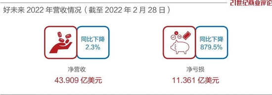 2021/2022财年(截至2022年2月28日),净营收43.909亿美元,同比下降2.3%;净亏损11.361亿美元,同比扩大879.5%。
