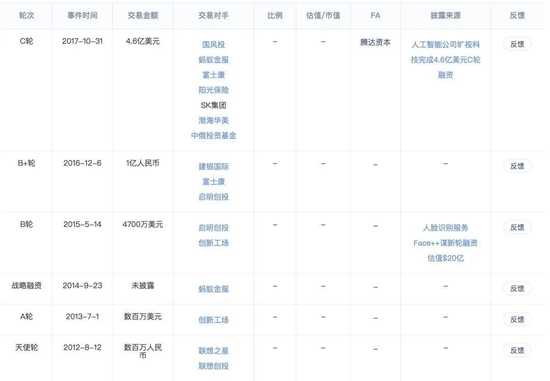 在此背景下,被称为“AI四小龙的”商汤科技、旷世科技、云从科技、依图科技脱颖而出。商汤科技拿到了4.1亿美元的B轮融资,旷视科技完成了4.6亿美元的C轮融资,先后创下了AI行业的单笔融资记录。