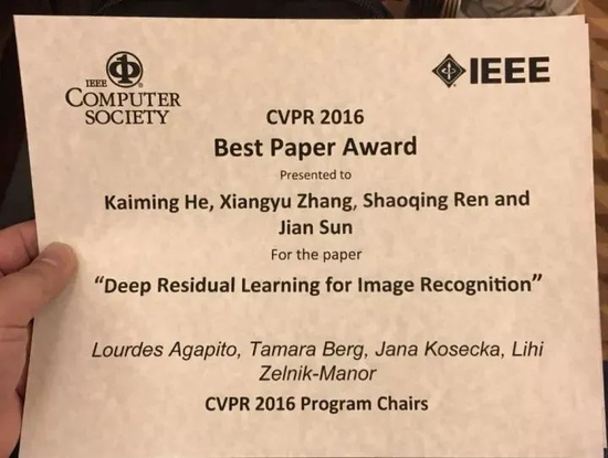 图:该论文获得 CVPR 2016 最佳论文奖