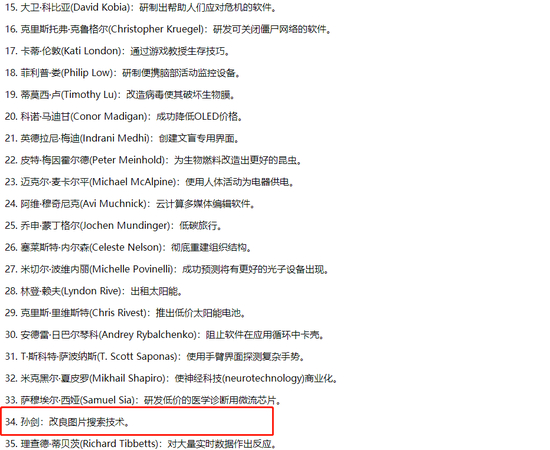 图:2010年度青年创新家榜单部分截图