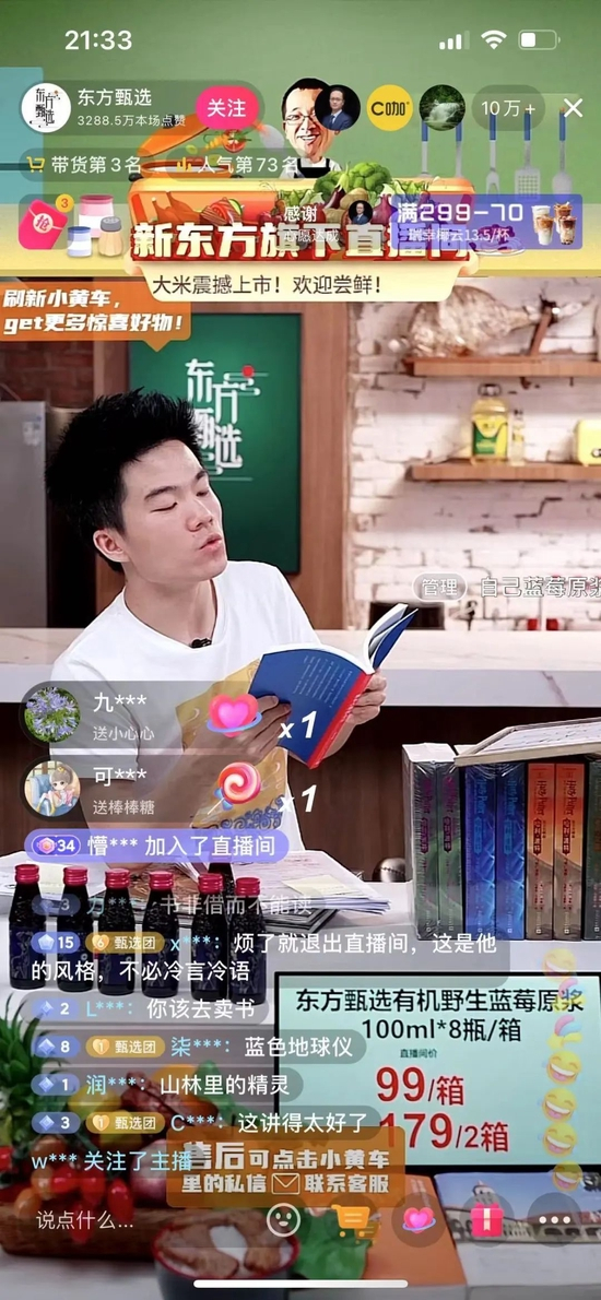 东方甄选的主播们像是在完成一场4×100米接力,每个人都在被更多的用户认识和喜欢。他们每人一天播3个小时,直播过程中旁征博引,多才多艺,而这些都得益于他们此前持续输入,坚持读书的好习惯。