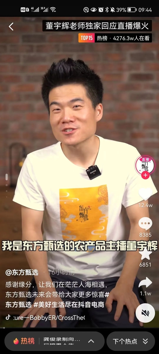但是,对于突然的爆红,董宇辉摸不到门道。