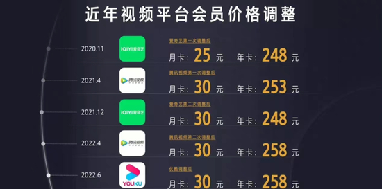 在爱奇艺之后,芒果TV于2021年12月22日、咪咕视频于今年1月6日、腾讯视频于今年4月20日先后宣布涨价。算上优酷,半年内5大长视频平台均已涨价。