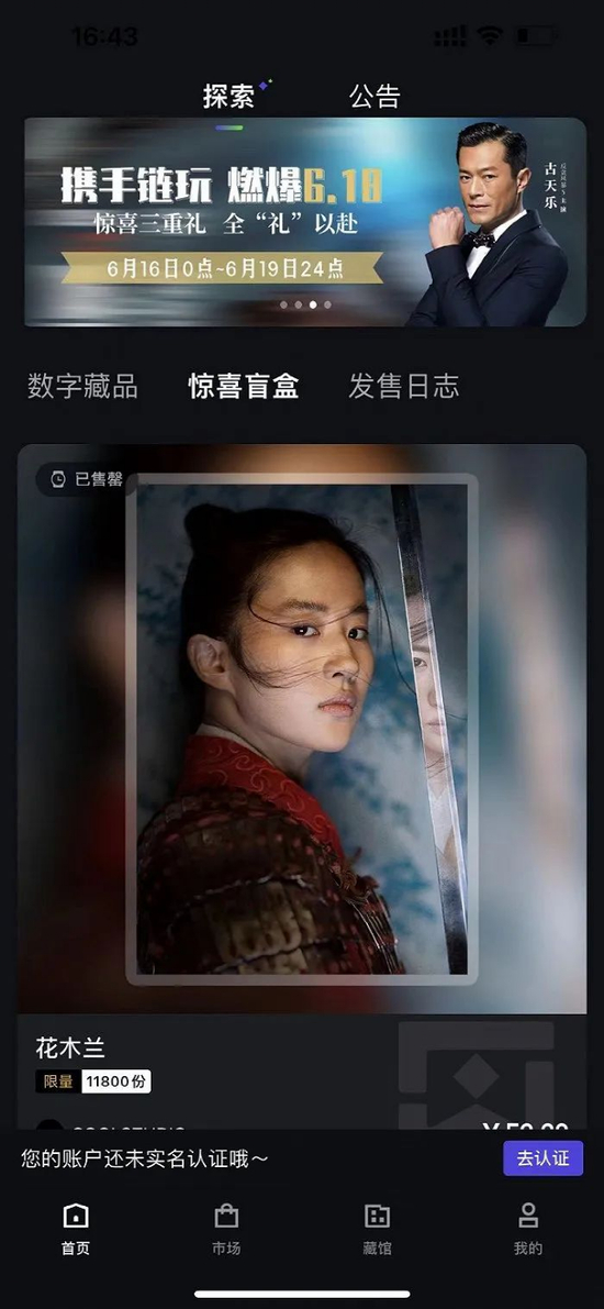 基金君注意到,除了古天乐,该平台上还有刘亦菲饰演的花木兰形象的数字藏品售卖,价格为59.9元人民币,数量11800份,显示已经售罄。但目前并不清楚是否获得刘亦菲方及《花木兰》电影版权方迪士尼公司方面的授权。