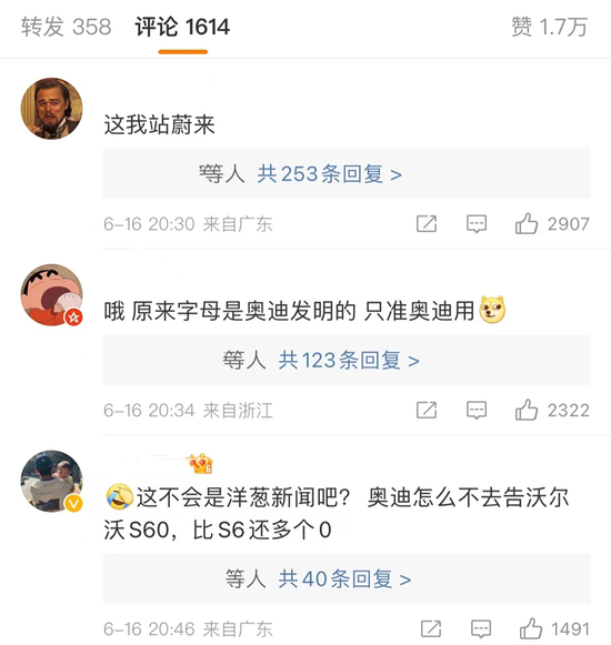 6月16日,“奥迪起诉蔚来侵权”空降新浪微博热搜,很快引起网友热议。