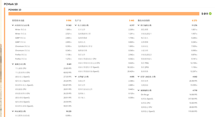 再就是更有针对使用场景的PCMark 10的测试结果,如下图所示:
