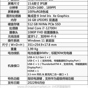 小K评测室拿到的是华为MateBook 16s产品,其具体参数如下图所示:
