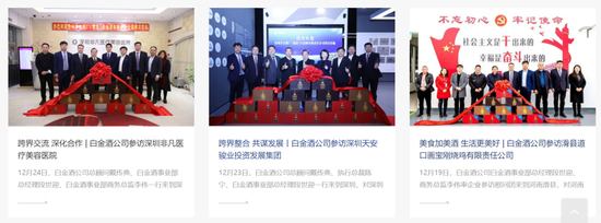 打开白金酒的官网,会发现这家公司的管理层特别热衷“跨界交流”。企业参访行业涉及医美、工程建设,乃至烧鸡。