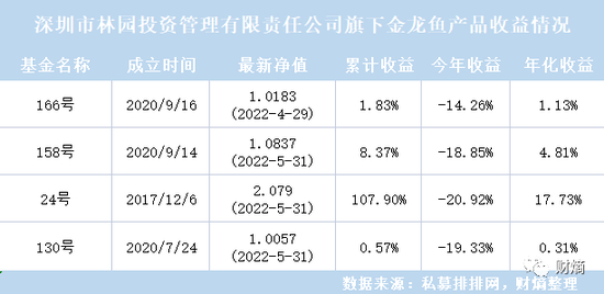 根据私募排排网数据显示,2022年以来,林园在金龙鱼相关产品的收益均为负数。虽然其累计收益未见亏损,但完全是因为买入时间早的缘故。2022年伊始,金龙鱼股价开始大跳水,据此推测,所有在2020年末或2021年初建仓的投资者,应该都难逃被套的厄运。