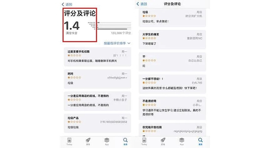 苹果App Store,学习通获得了12万个评分,平均评分仅为1.4(满分5分)。在采访中,多位大学生用户向《21CBR》提到,学习通使用体验不佳。