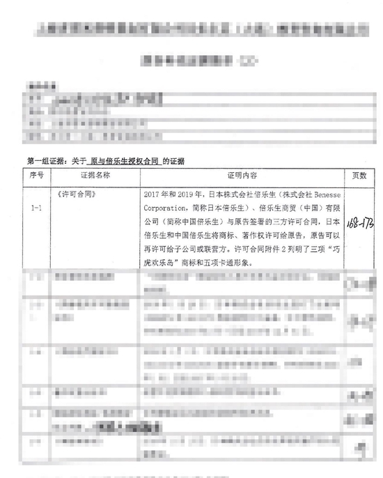 在多雷米作为原告的一起合同纠纷案中,被告方向记者提供了一份《原告补充证据清单》。在多雷米提供的补充证据清单中,第一条证据名称为 “许可合同”,证明内容为“2017年和2019年,日本株式会社倍乐生、倍乐生商贸(中国)有限公司与原告签署的三方许可合同,日本倍乐生和中国倍乐生将商标、著作权许可给原告”,页数为168-173。