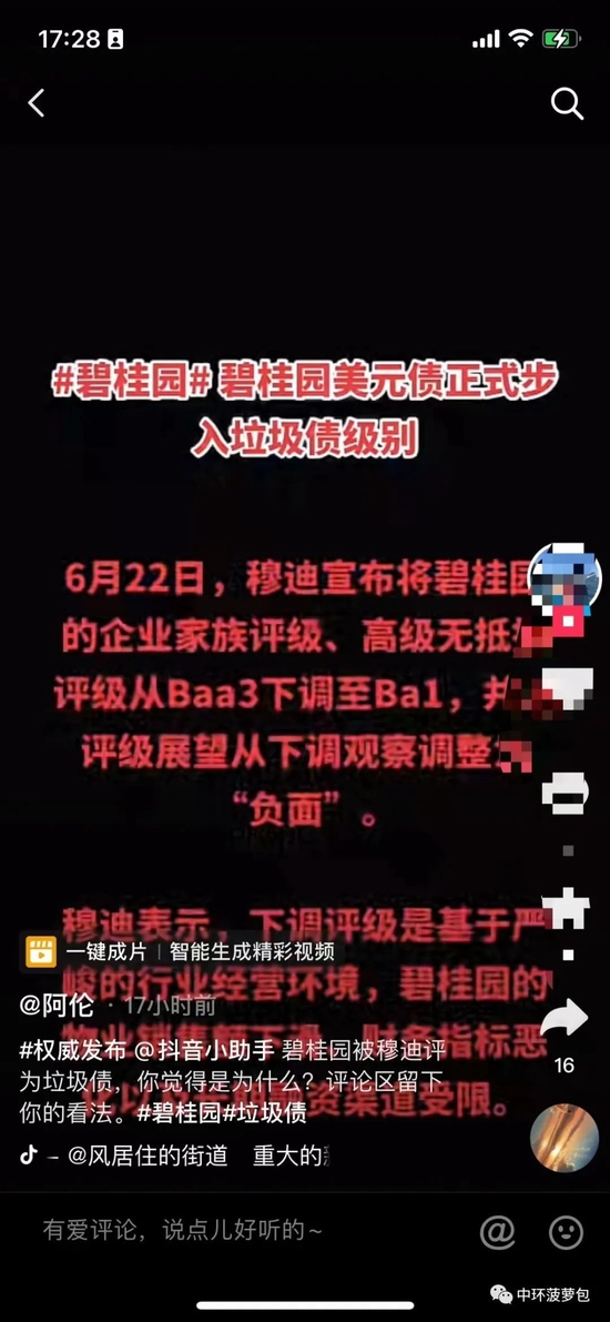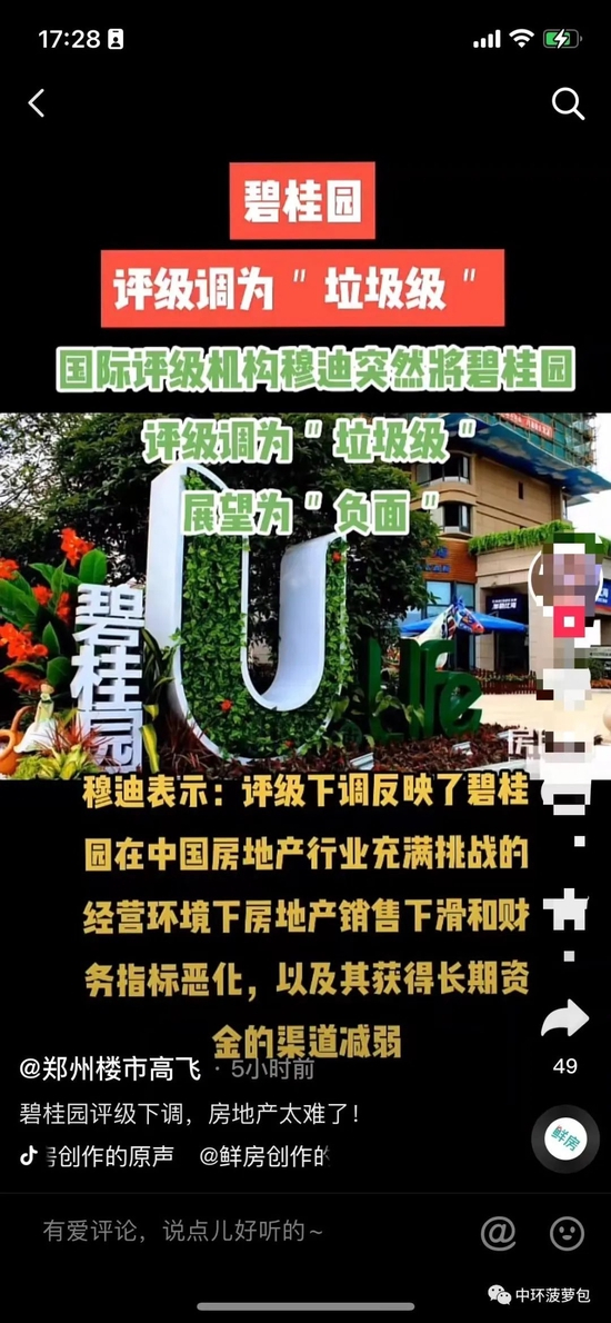 因为穆迪一个正常调整评级行为,昨晚碧桂园成功带领房企破圈。流量媒体平台满屏都是“碧桂园沦为垃圾级”,“碧桂园是不是不行了”的文章和讨论,一时间霸占各大主流互联网平台,场面相当热闹: