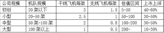 其实翼哥有一个很简单的计算方式,就是通过航空公司的机队规模进行估值。