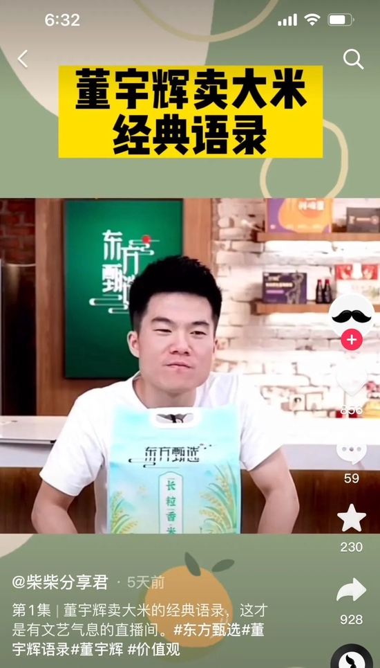 董宇辉是新东方旗下东方甄选直播间主播,因金句频出、独特的双语讲解圈粉无数。在社交平台上,“在知识付费的直播间,我付费了N袋大米”的段子广为流传。截至6月29日18时,东方甄选直播间粉丝量已经达到2006.9万。