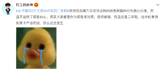 #女子曝花6千元在SKP买到二手鞋#上热搜,网友:这品牌怎么能做大?