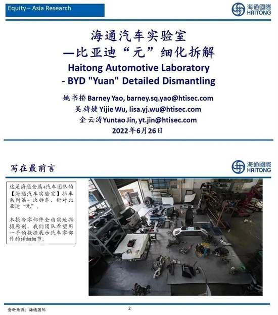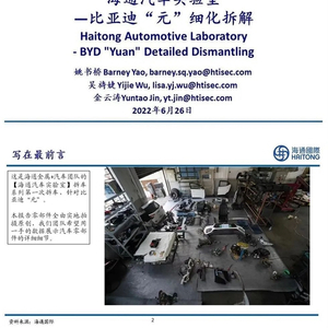 券商也卷起来了?近日,海通国际一份名为《海通汽车实验室——比亚迪“元”细化拆解》的研报引起热议。据悉,研究团队动手拆解了一辆原价10万元的比亚迪,还撰写了一份长达87页的研究报告。
