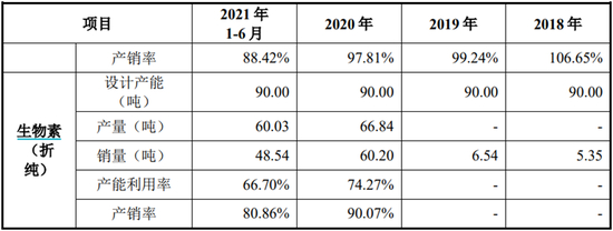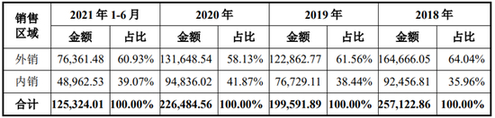 表8:2018年至2021年1-6月天新药业外销和内销占比情况