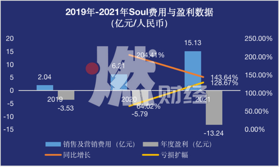 招股书显示,2019-2021年,Soul统计期内亏损分别为3.53亿元、5.79亿元和13.24亿元,从2020年起,亏损较上一年同比扩大64.02%和128.67%。