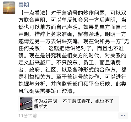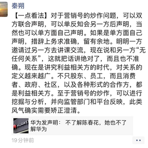 秦朔cue华为:明明邀请过对方去交流却说没任何关系,把话讲绝对了