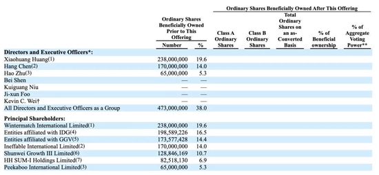 四大资本机构分食将近一半股权,合计持有48.5%的股份。其中IDG持股16.5%;纪源资本GGV持股14.4%、小米雷军控股的顺为资本持股10.7%、高瓴资本张磊管理的HH SUM-I持股6.9%。