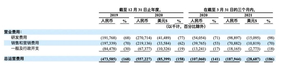 2019年和2020年,群核科技实现营收分别为2.82亿元、3.53 亿元;2020年一季度和2021年一季度营收分别为0.76亿元、1亿元;营收同比均呈现出两位的增速度。毛利水平也维持较高水平,同期毛利分别为1.94亿元、2.39亿元;0.54亿元、0.67亿元,毛利率均保持在67%以上,但高研发、高销售及营销开支下,群核科技的净利润长期难以覆盖其支出。