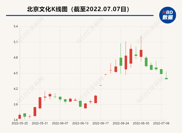 此外,近日北京文化持股5%以上股东西藏金宝藏及其一致行动人新疆嘉梦所持公司股份也被司法拍卖,6月至今,西藏金宝藏持有的298.6万股(占公司总股本的0.42%)、新疆嘉梦持有的1000万股(占公司总股本的1.40%)相继被拍卖。