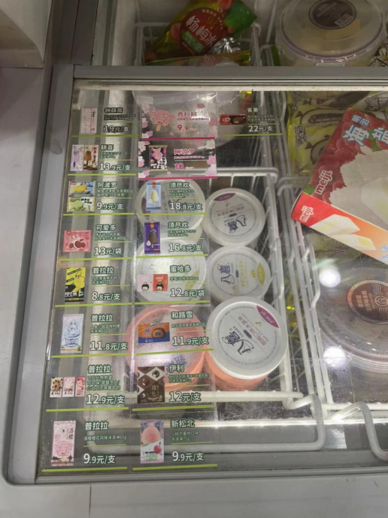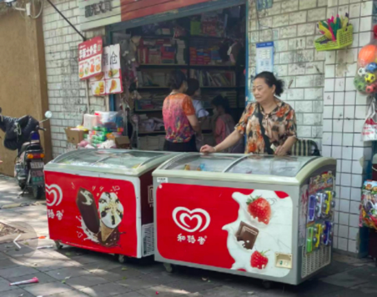 电厂记者走访北京、武汉等多地市场发现,在中小学校附近的夫妻店内,存在着大量的平价雪糕,包括1元一根的老冰棍;在线下商超渠道,绿色心情、随变、苦咖啡、旺旺碎冰冰、八喜等经典平价冰品依然大量铺货。湖南省某三线城市超市老板也告诉电厂,当地超市几乎没有网红雪糕,只有伊利、蒙牛等巨头产品和部分湖南当地品牌。