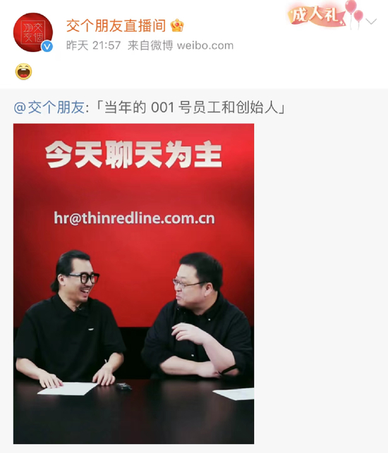 7月10日晚间,罗永浩在“交个朋友直播间”官宣了自己的全新创业之旅开启,在和朱萧木直播的过程中,背景中悄然挂出了“hr@thinredline.com.cn”的招聘邮箱,“当年的001号员工和创始人”也再次聚首。