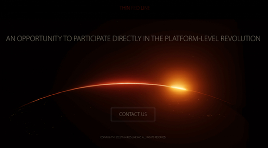 罗永浩的新公司取名为“Thin Red Line”(翻译为细红线,未公布正式中文名)。查看官方网站,还没有什么实质性内容,只有一条“细红线”组成地平线,同时还有一句话:AN OPPORTUNITY TO PARTICIPATE DIRECTLY IN THE PLATFORM-LEVEL REVOLUTION(直接参与平台级革命的机会)。