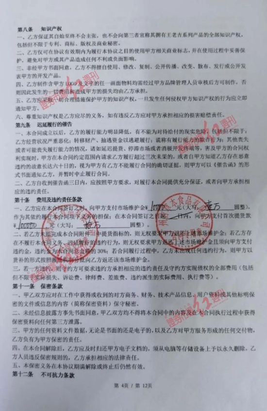 “招商公司根本就没想着把产品做活,只是想圈钱割韭菜。”代理商伞忠友表示,合同的相关条款都是约束我们的居多,他们把责任都规避掉了。在签约后,产品由于没有广告支持,各种帮扶政策亦不兑现,最终导致产品卖不出去,“第一批货卖不出,就不敢进第二批货,被迫违约!”