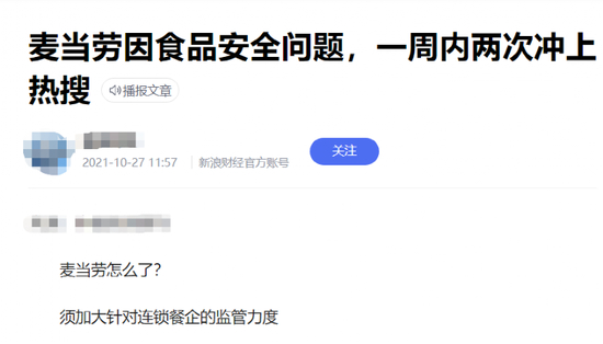 麦当劳因为食品安全问题上热搜,很多人可能已经司空见惯,去年10月麦当劳甚至一周内就上了两次热搜。