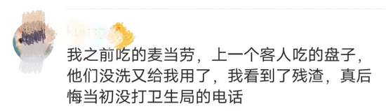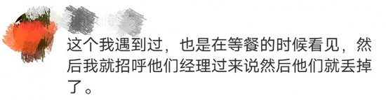 部分网友则爆料遇到过类似的事情,“也是在等餐的时候看见,招呼经理过来说然后他们就丢掉了”“上一个客人吃的盘子他们没洗又给我用,我看到了残渣”。