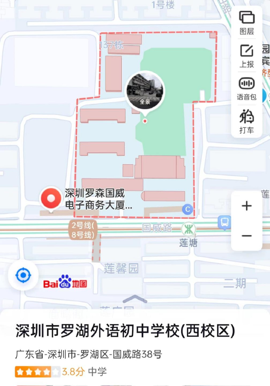 新浪科技查询地图显示,罗森(深圳)便利有限公司国威商务大厦店就开在深圳市罗湖外语初中学校(西校区)门口,距离不到50米。