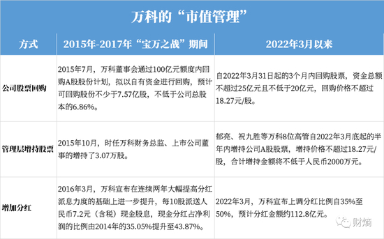 万科祭出了和“宝万之战”期间类似的市值管理方案,财熵整理