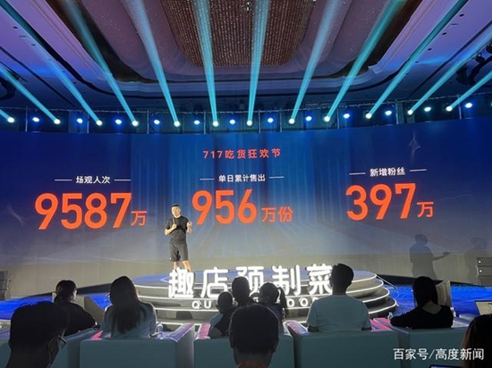 根据罗敏在发布会上公布的数据,7月17日当日,直播场观人次为9587万人次,单日累计售出956万份,新增粉丝397万。