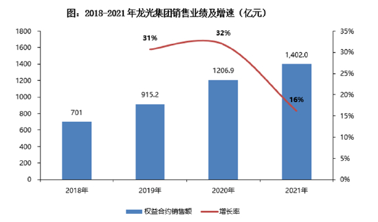 在全国城镇化浪潮以及积极纳储策略之下,龙光集团销售业绩突飞猛进。过去几年,公司年销售额同比增速均保持在30%以上的水平,2020年龙光集团跻身“千亿俱乐部”。