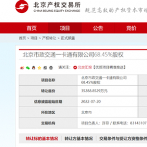 “北京一卡通”计划易主了。近日,北京产权交易所披露了一个股权转让项目“北京市政交通一卡通有限公司68.45%股权”。根据公告,北京市政交通一卡通有限公司最大股东北京控股集团有限公司要将所持有的68.45%股权全部出手,转让底价为3.53亿元。目前该项目仍处于披露公告期,信息披露结束日期为8月16日。业内人士认为,除了北控集团自身布局的因素,移动支付的兴起对北京一卡通带来了越来越大的竞争压力,或许是此次转让背后的一大诱因。