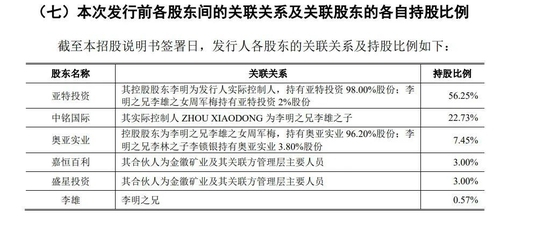 相似的情况也发生在2019年1月,金徽矿业股东奥亚实业,与中国(海南)改革发展研究院(下称“中改院”)签订了《股权转让合同》,做出与中改院业绩对赌。据公开资料,奥亚实业控股股东周军梅为李明侄女。