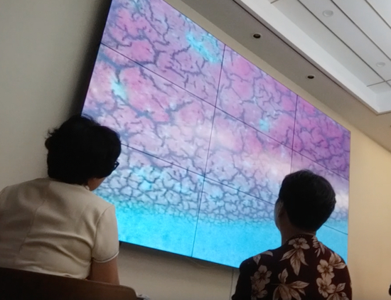 慈孝堂总部一滴血检测师(左)正在给“病人分析病情”/本刊记者 摄