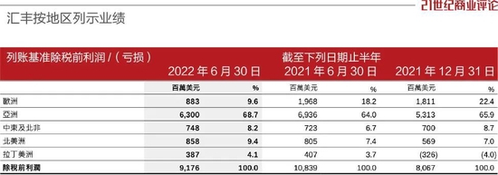 2021年,汇丰列账基准除税前利润达到189亿美元,亚洲业务贡献了122亿美元,占比达64.6%。
