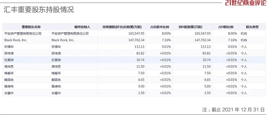 截2021年底,平安集团持有汇丰普通股约16.5亿股,持股比例为8%,为第一大股东。