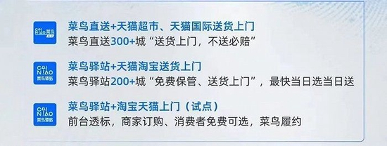 系列动作指向一个信号:菜鸟扩大了“送货上门”的服务类型和覆盖范围。
