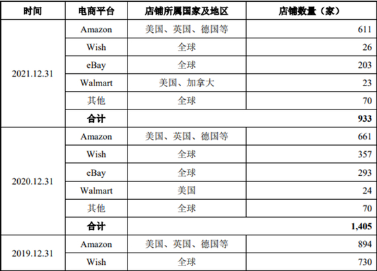 同期,赛维时代在亚马逊的店铺数量从894家降至611家;在Wish的店铺数量从730家降至26家,只剩了零头;在eBay的店铺数量从515家降至203家,在各大平台降幅都较大。