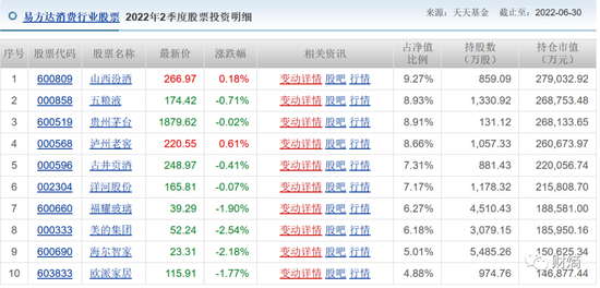 据财熵不完全统计,萧楠过去对格力电器(000651.SZ)、美的集团(000333.SZ)、贵州茅台(600519.SH)、五粮液(000858)等个股的持仓时间长达5年以上。其目前在管的易方达消费行业前十重仓股中,也几乎都是消费行业各大细分领域的龙头企业,而且还是白酒股居多。