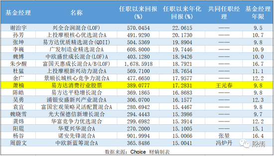 任职年化回报是衡量基金经理赚钱能力的一个重要指标。据财熵不完全统计,截至2022年7月末,在A股接近3000位基金经理中,管理基金年限超过9年,且任职年化超过15%的基金经理只有17位,萧楠就是其中之一。