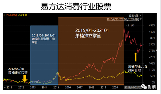 萧楠身上的标签有很多,但从“易方达双子星”,到“易方达三剑客”,再到“易方达四大天王”,几乎都是与他人捆绑;而独属于他一人的,似乎只有“消费之王”这个称号。