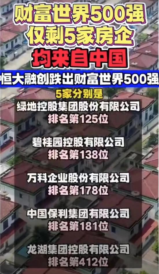 恒大、融创跌出榜单,财富世界500强仅剩5家房企