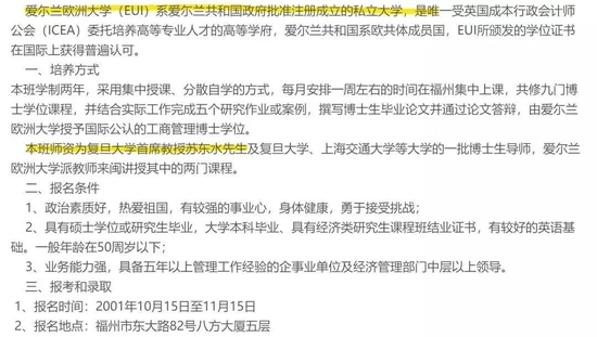 陈教授没有讲清楚,为什么就读爱尔兰欧洲大学DBA,是由复旦大学的苏东水教授指导的。(这件事稍后会有破案线索)