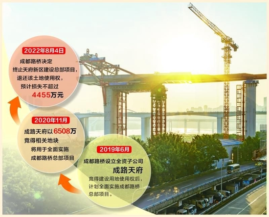 2022年8月4日,成都路桥发布公告,自取得上述宗地国有建设用地使用权后,投入资金支付前期相关费用。但由于该项目所处市场环境变化,以及金融环境变化形成项目融资渠道障碍等原因,同时结合目前经营实际情况及未来发展规划,成都路桥决定终止投资该项目,并与政府相关部门协商解除上述《履约协议》和《出让合同》,退还该土地使用权。