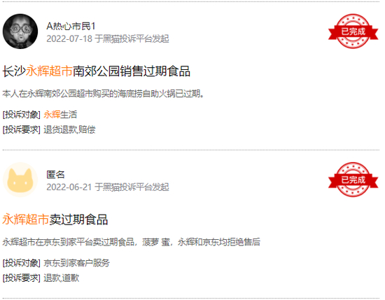 黑猫投诉网上,也存在多位消费者反馈永辉超市卖过期食品。
